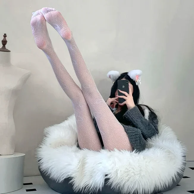 Sexy Jacquard Fishnet Black Silk Stockings