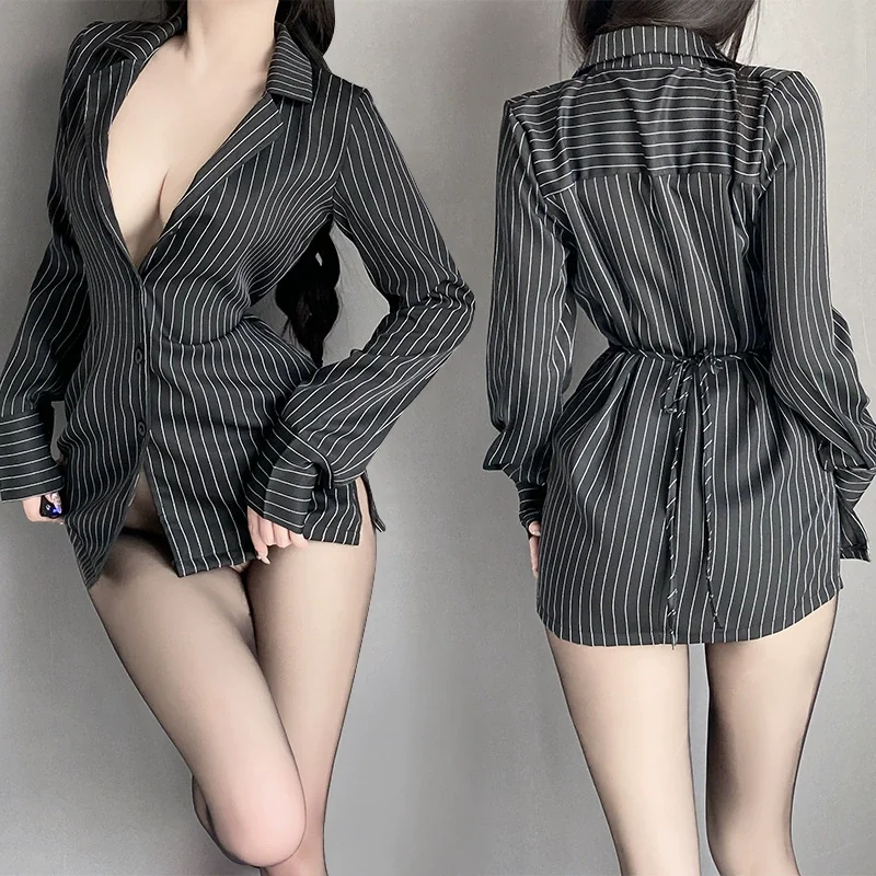 Sexy Secretary Abstinence Striped Shirt Suit